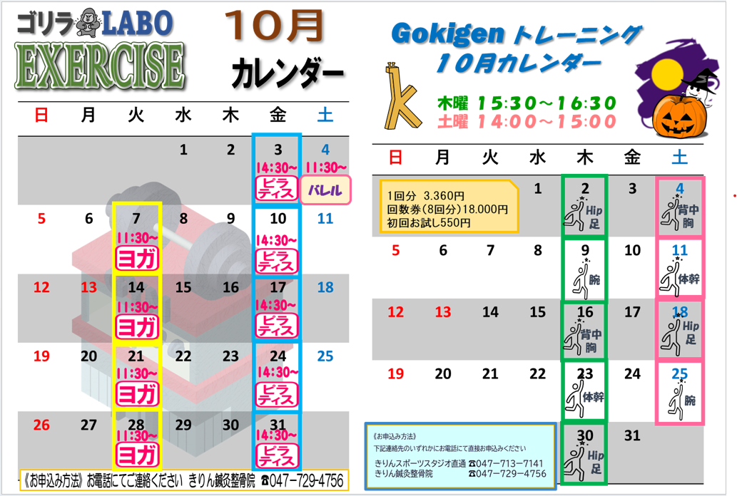 10月のスケジュールをお知らせ致します。