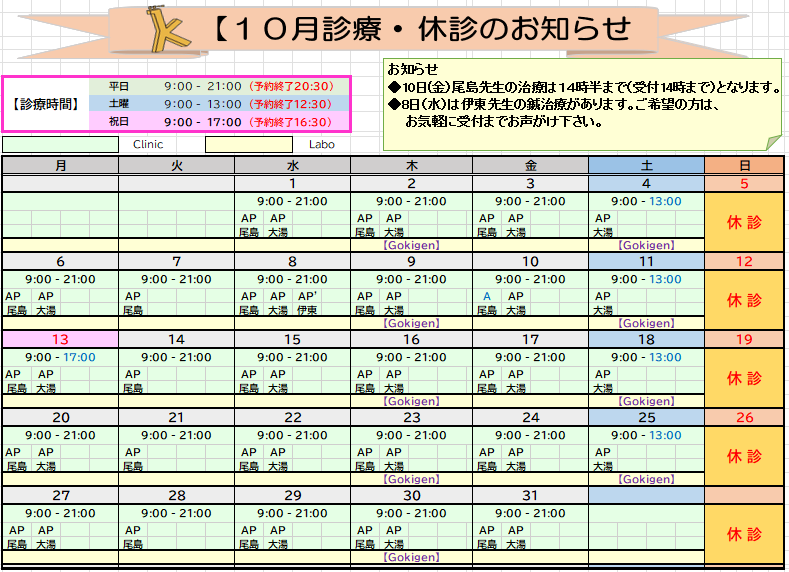 - 2025.9.24 New ♪10月の診療予定とごりらラボスケジュールのお知らせ♪